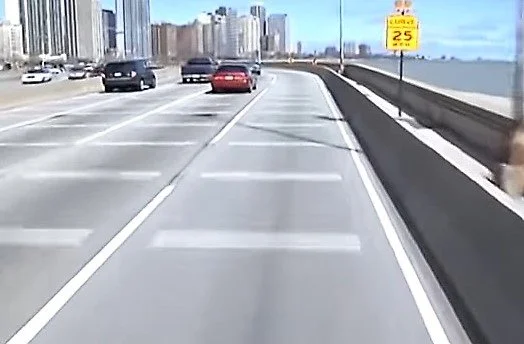 NOTA* Il lago Michigan è un esempio di nudging applicato a scale più grandi della progettazione degli spazi, quali la pianificazione del territorio. La strada che lo costeggia è panoramica ma presenta una serie di curve pericolose. Siccome molti autisti all’inizio non prestavano attenzione al limite di velocità segnalato la città ha adottato un nuovo modo per incoraggiare i conducenti a rallentare. Una serie di strisce bianche dipinte sulla strada che non sono dossi di velocità ma semplicemente inviano un segnale visivo ai conducenti. Quando le strisce compaiono per la prima volta, sono distanziate uniformemente, ma quando i conducenti raggiungono la parte più pericolosa della curva, le strisce diventano più ravvicinate, dando la sensazione che la velocità di guida sia in aumento e innescando l'istinto naturale a rallentare.